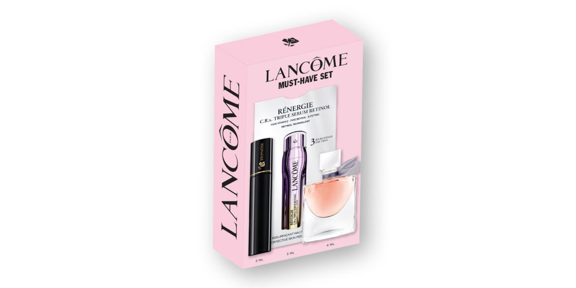 Beim Kauf von zwei Lancôme Pro­duk­ten, davon eine Gesicht­spflege, schenken wir Ihnen dieses exk­lu­sive Lancôme Must-have Set