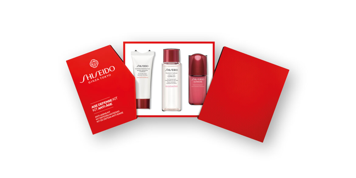 Beim Kauf eines Shiseido Produktes erhalten Sie ein Shiseido Age Defense Kit gratis dazu. Solange der Vorrat reicht.