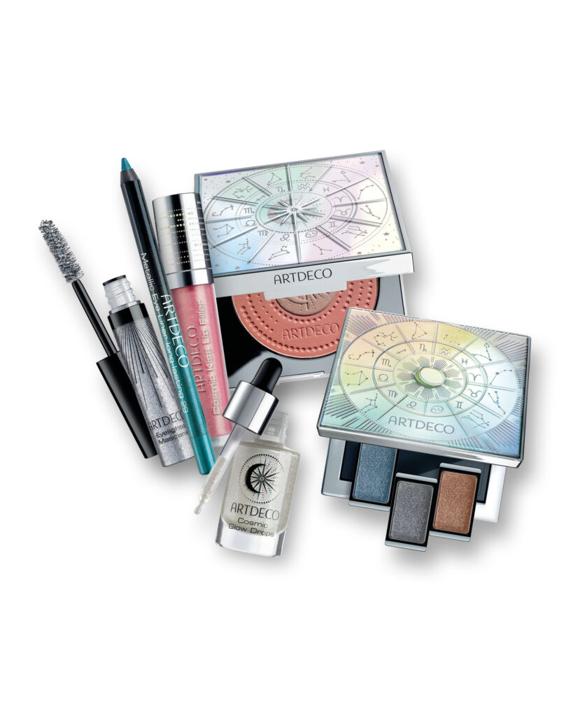 Cosmic Glam, die Glamour-Kollektion, entführt in eine andere Welt. Spannende Make-up-Looks mit metallischem Schimmer und galaktischem Glitter verkörpern die Grenzenlosigkeit des Kosmos. Einzigartige, von der Astrologie inspirierte Verpackungen umhüllen hochwertige Texturen, die einen multidimensionalen Look kreieren. Rosa und Kupfer treffen auf Silber und Blau. So spiegeln diese Produkte die Weite des (Schönheits-)Universums wider.